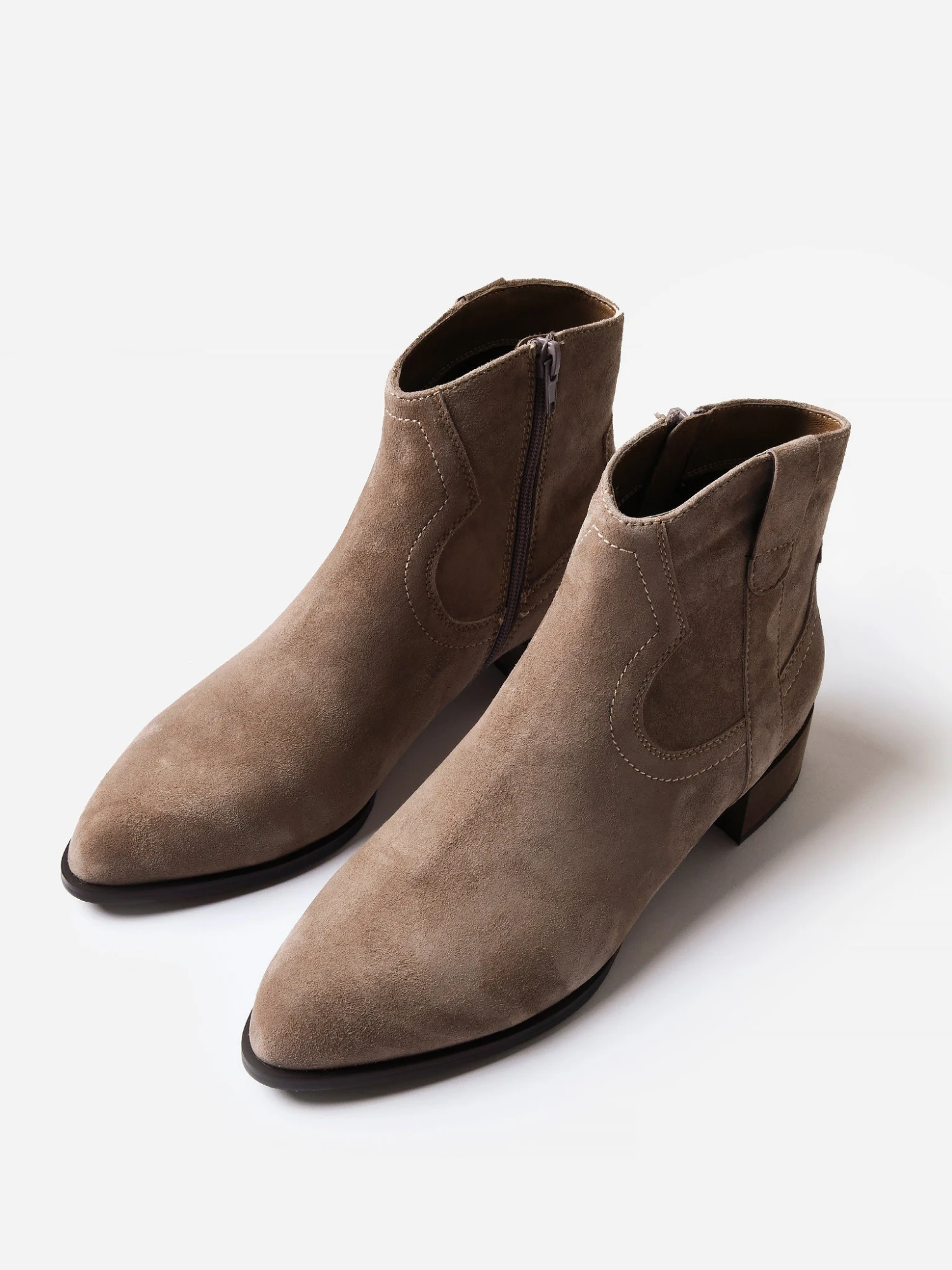 FEATURES:BootCurved ToplineInner Ankle ZipPointed ToeRubber SoleSuede FabricationBoot Shaft Height: 5.75 in.Heel Height: 1.25 in.