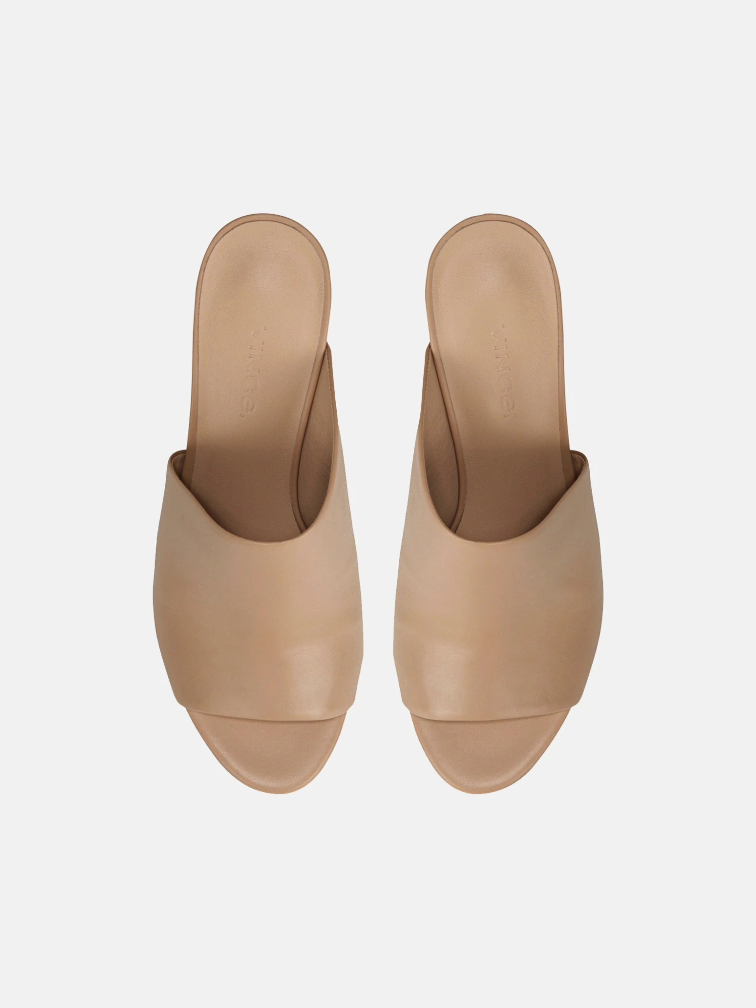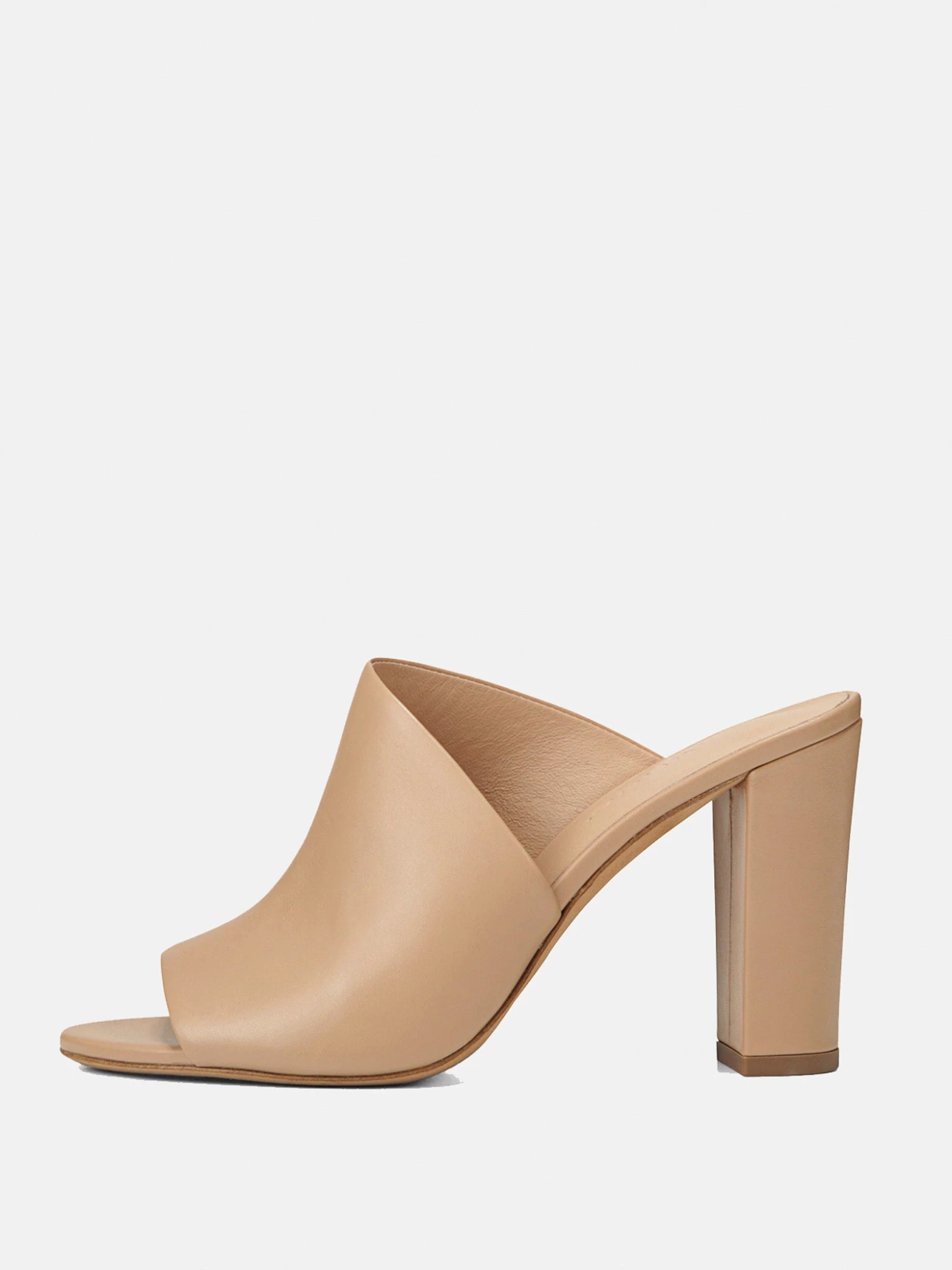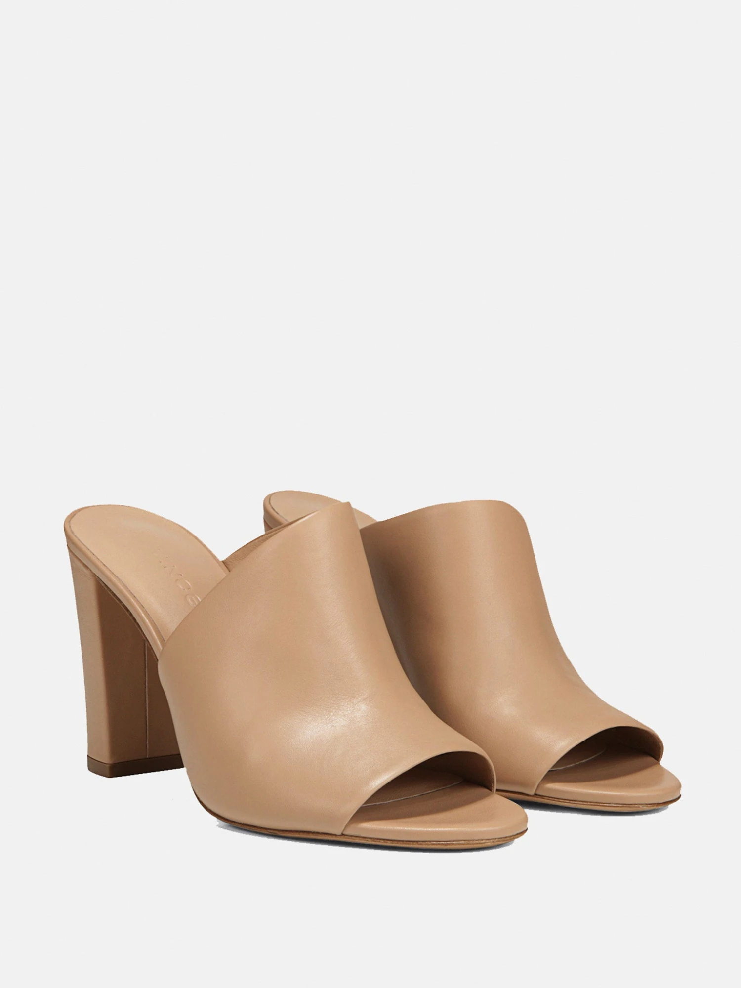 Made in Italy, these heeled peep-toe mules are crafted in leather and feature an asymmetric upper.