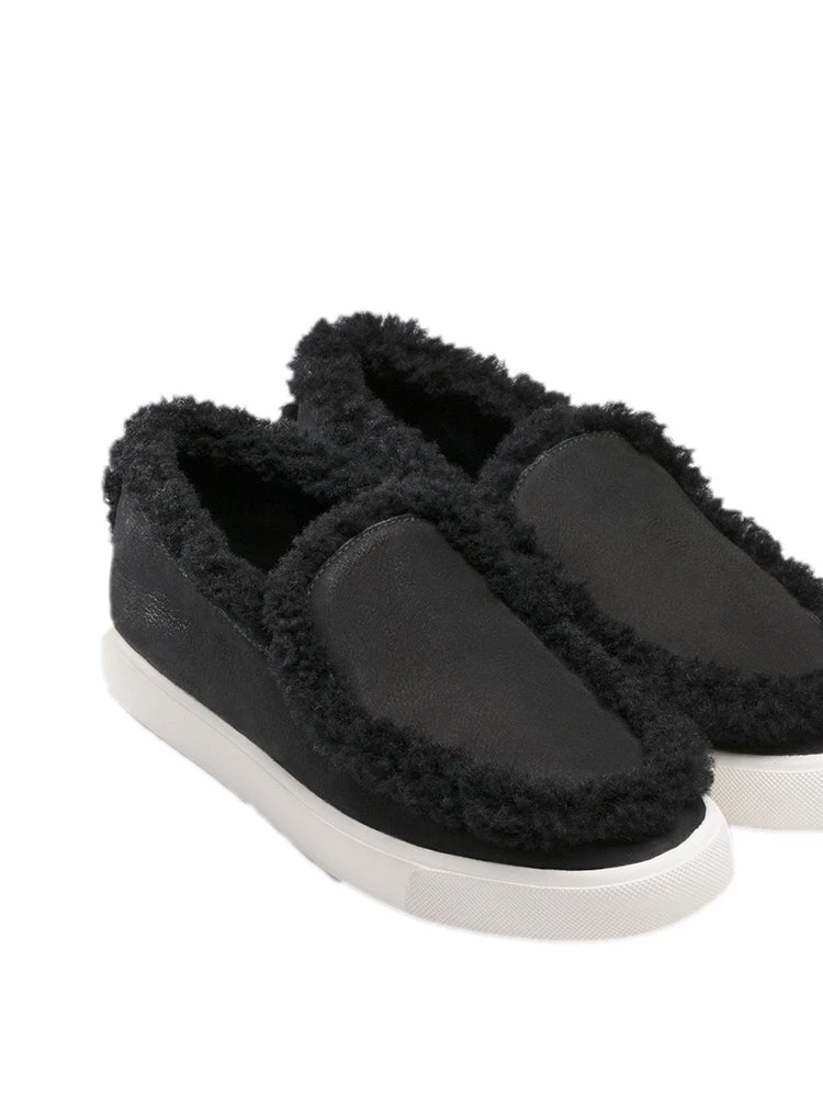 FEATURES:Suede skate sneaker trimmed with tonal shearlingRubber flatform, 1.25 (30mm)Suede and shearling upperRound toeSlip-on styleLeather liningRubber solePadded insoleDyed shearling imported.