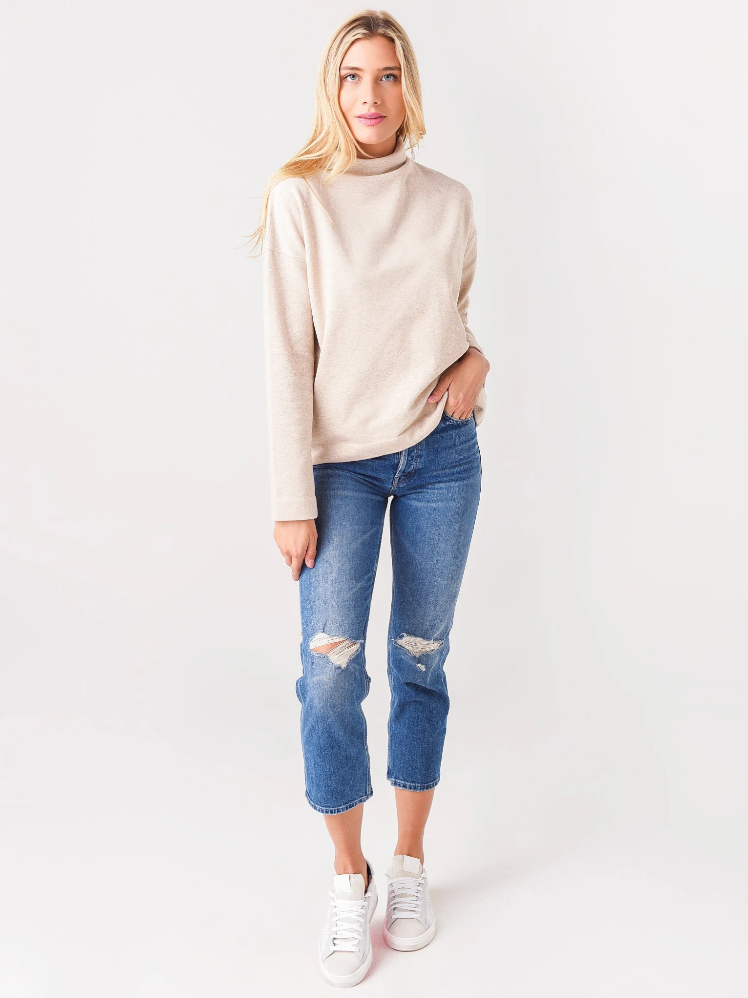 The Vince Women’s Dropped Shoulder Funnel Neck Pullover is an elevated cozy number with an elegant funnel neck, easy body, and fitted sleeves.