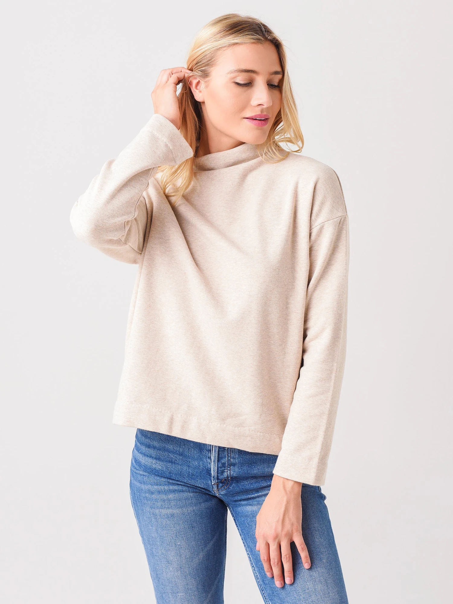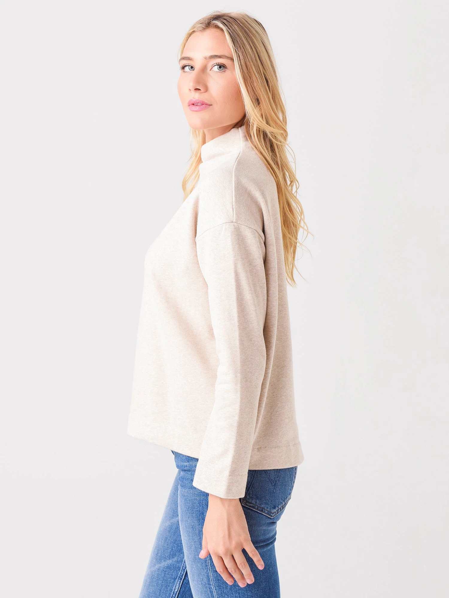 FEATURES:PulloverFunnel NeckLong Fitted Sleeve, Dropped-ShoulderBrushed Terry FabricationSuper SoftRelaxed Fit78% Cotton, 14% Polyester, 8% SpandexModel is wearing size Small pullover.Model’s Measurements: Height: 5’9″; Bust: 34B; Waist: 26″; Hips: 37″; Dress Size: 2-4 (US)