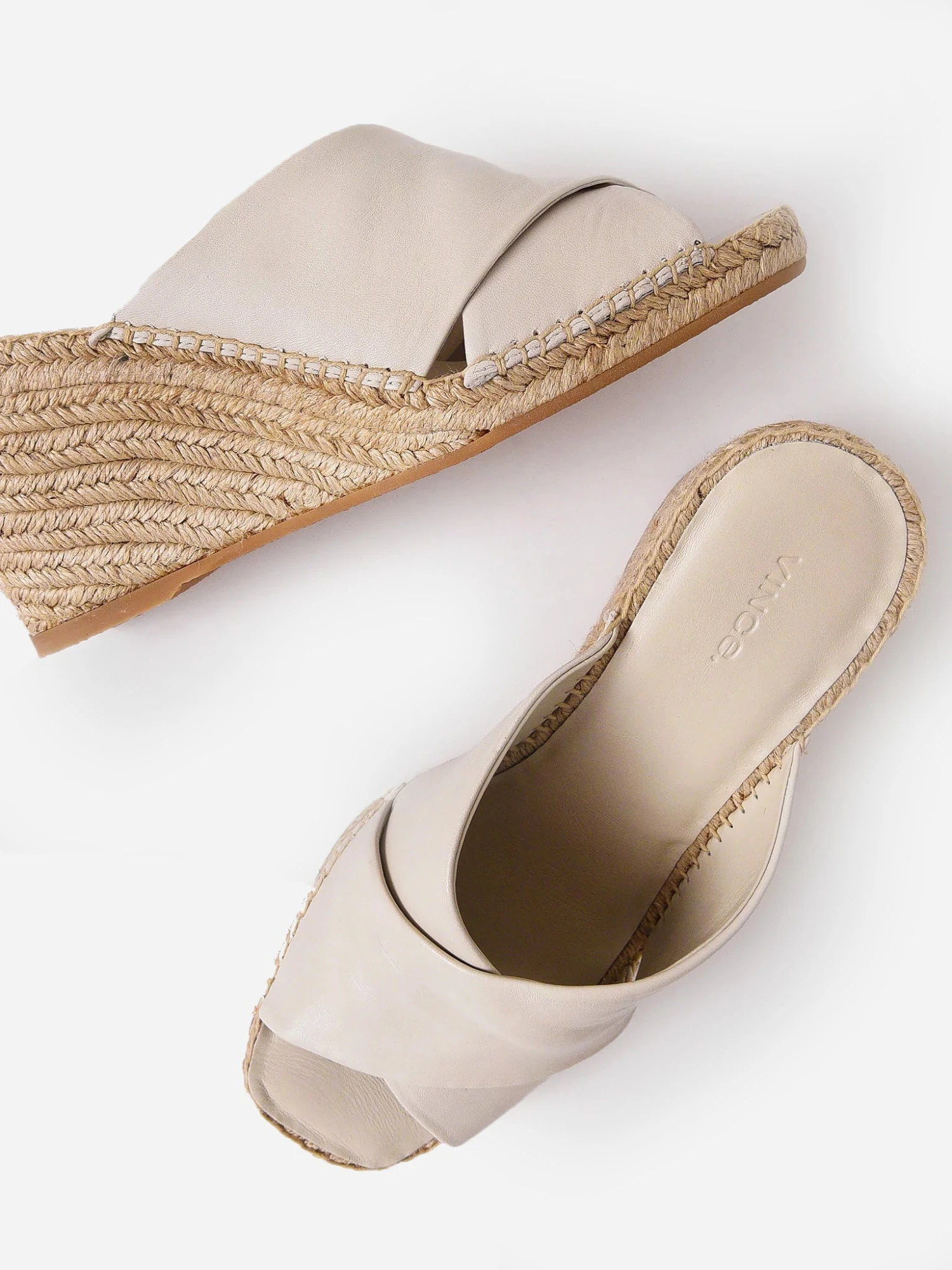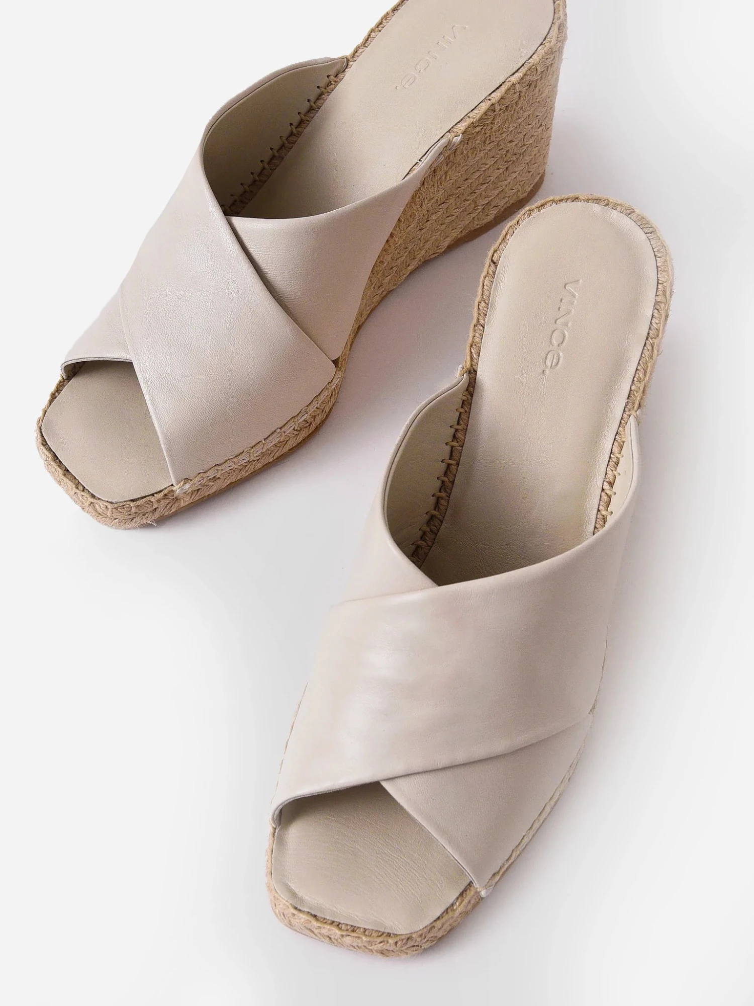 FEATURES:WedgeRounded Square ToePeep ToeCriss-Cross StrapsEspadrille StyleHeel Height: 3.5 in.100% Calf Leather