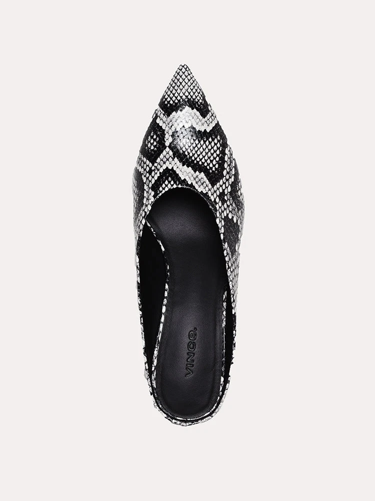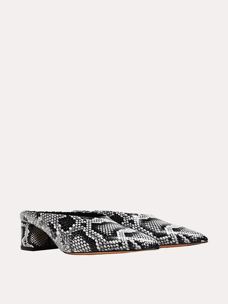 Be fashion forward in the sleek snake skin wrapped Vince Women’s Ralston Mule.