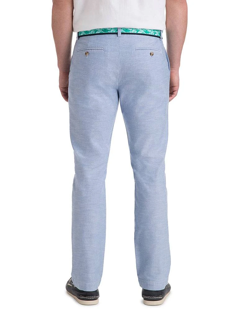 FEATURES:100% cotton Lightweight and textured for a casual lookClassic cutWaistband interior pattern in pineapple and palm chappy Slash pockets and back button-through pocketsPlain front for an informal neat lookHorn buttonsMachine wash cold