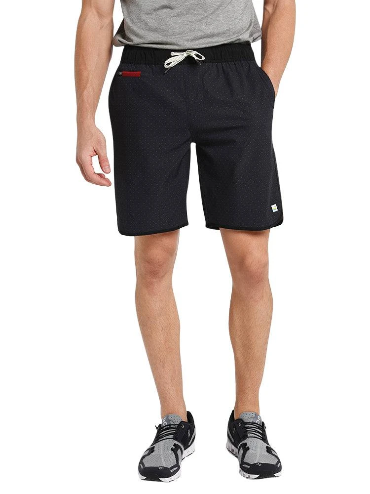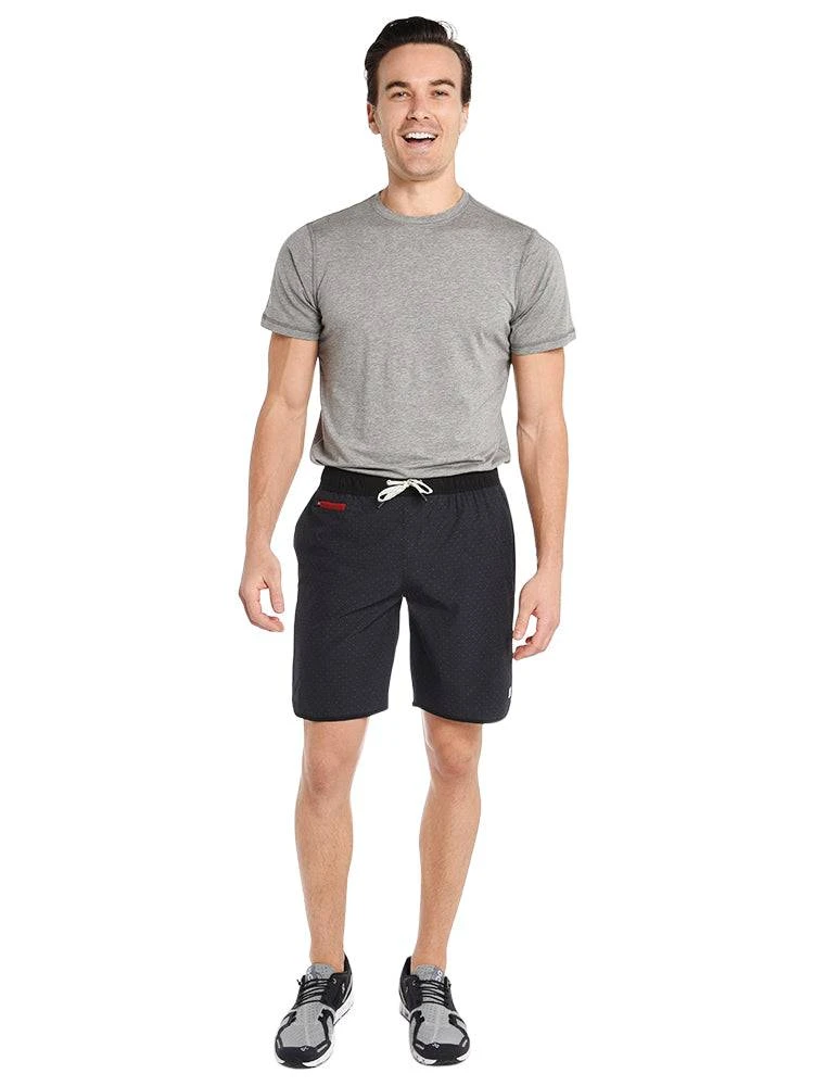 FEATURES:Elastic waistband with drawstring Front and back zip pockets Front slant pockets Scalloped leg Four-way stretch Quick-drying 44% recycled polyester, 44% polyester, 12% spandex Styled with Vuoir tee Style # V101-HTG and ON shoes Style # MENSCLOUD. Model is wearing size medium short and tee.