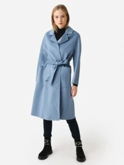 Herno Women’s Diagonal Wool And Nylon Ultralight Coat With Removable Nylon Sleeve