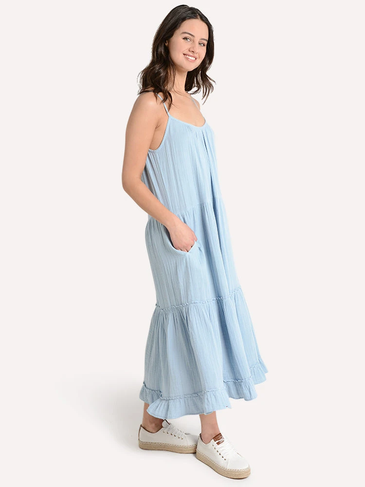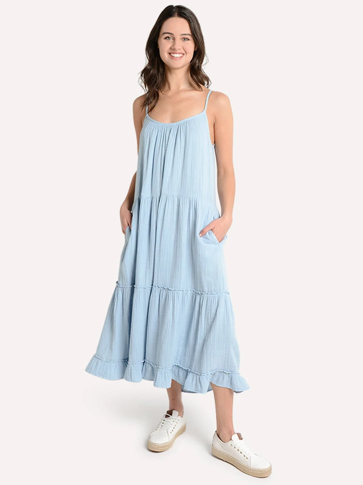 FEATURES:100% CottonCrinkleAdjustable straps Tiered Styled with Trenton Style # EVE. Model is wearing size small dress.