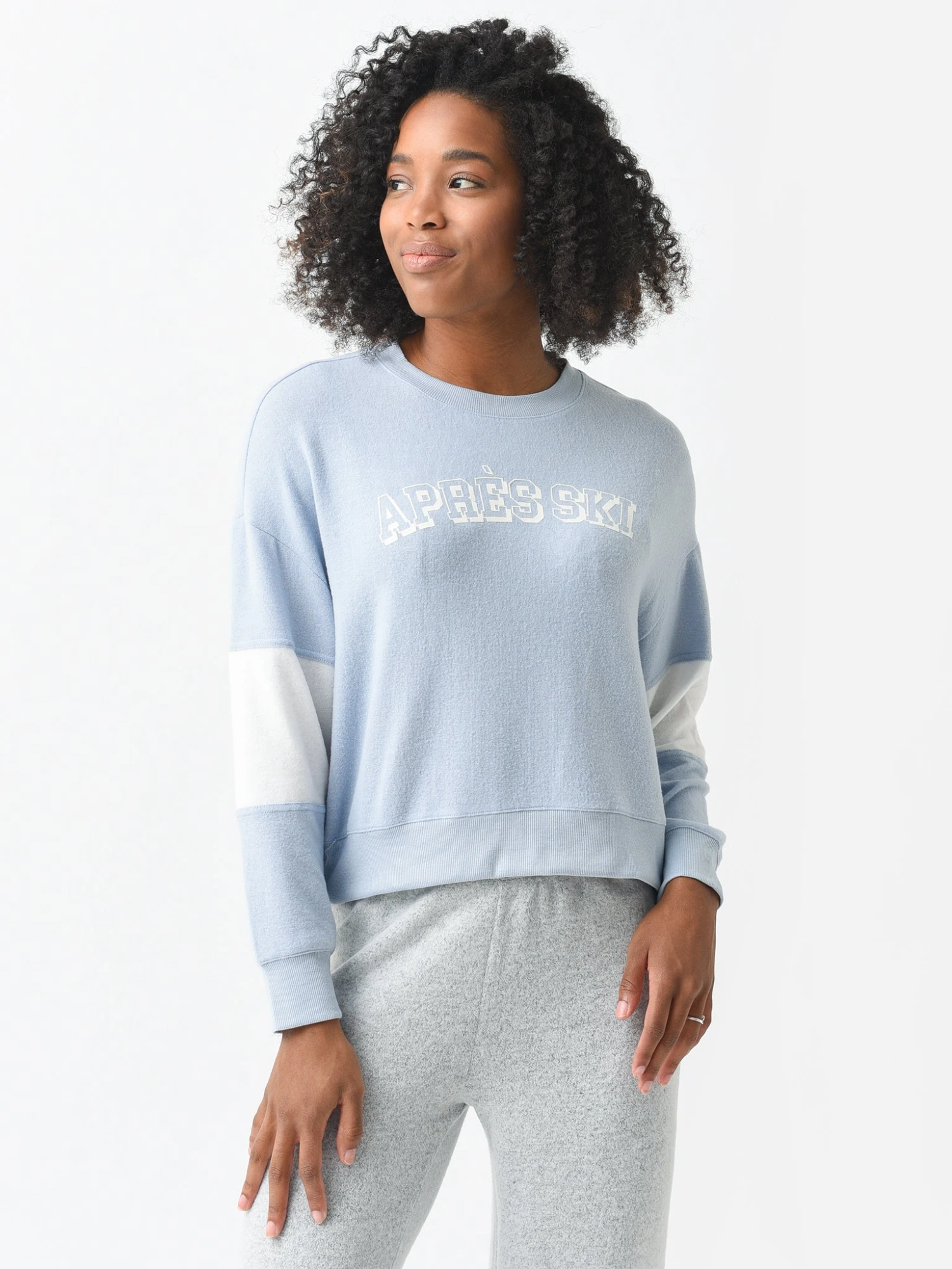 Cozy brushed knit top with a front graphic.