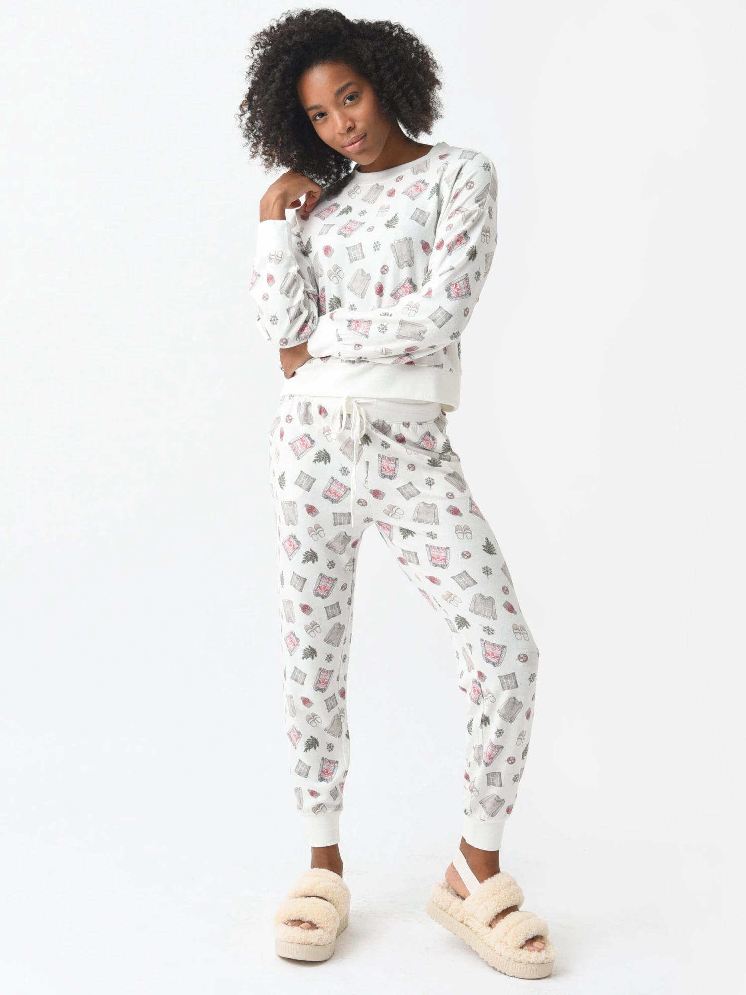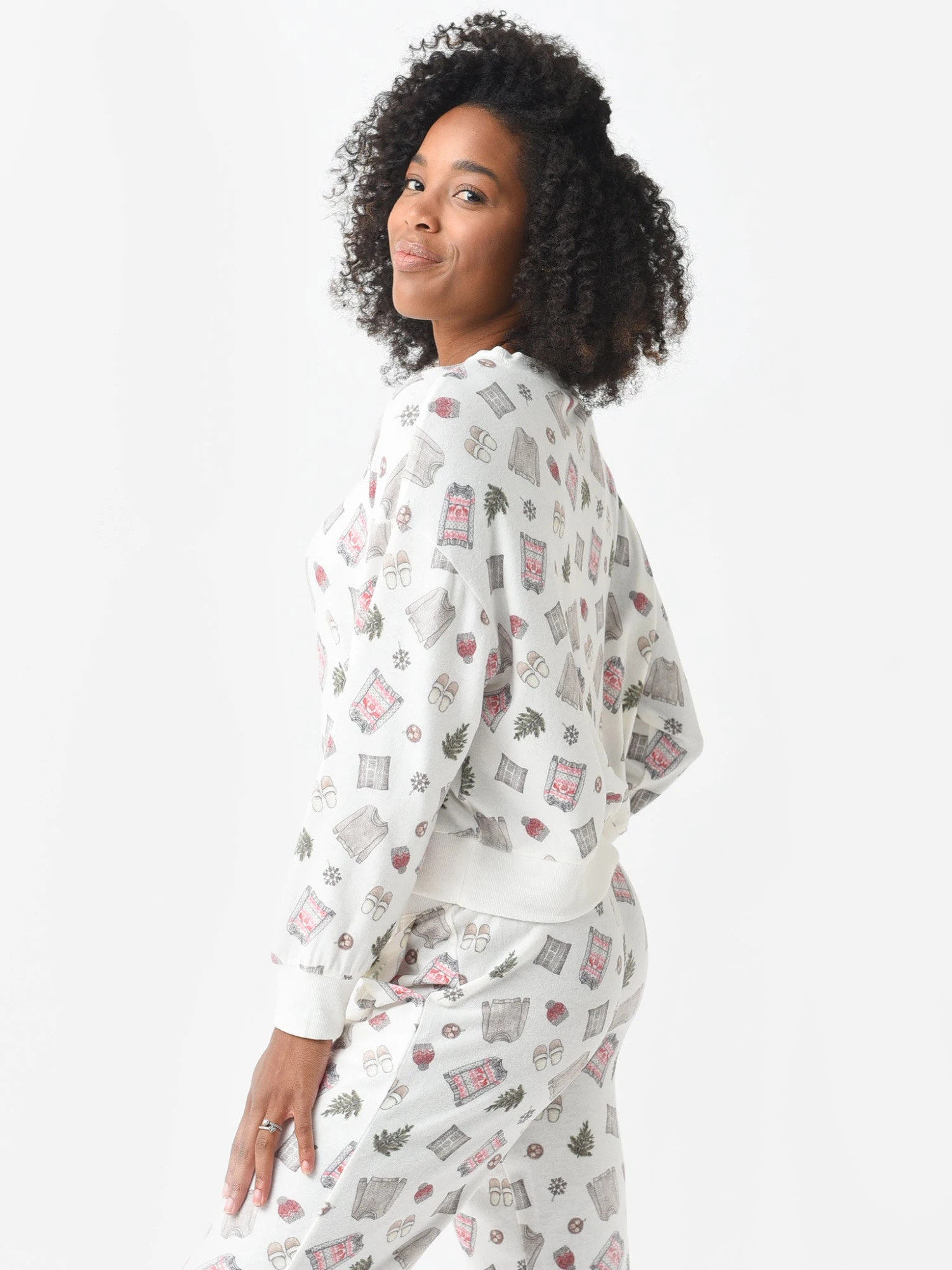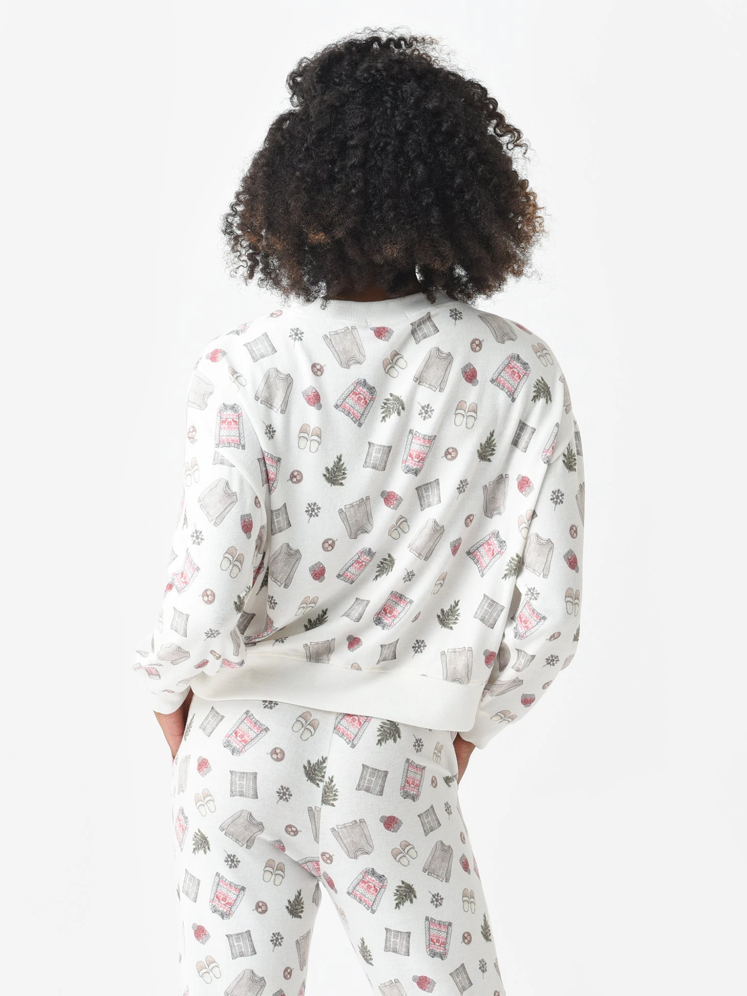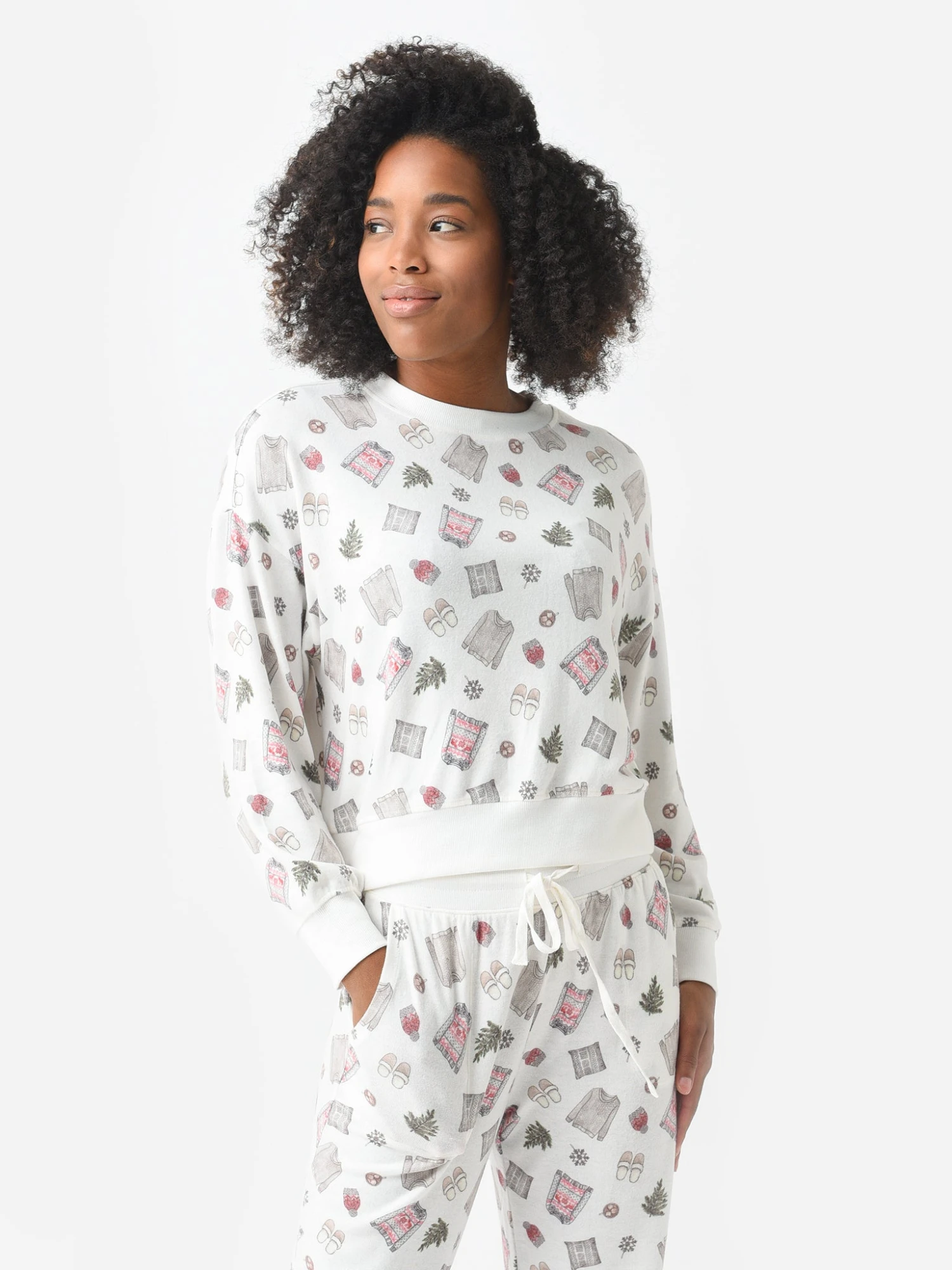 FEATURES:TopCrew NecklineDropped ShoulderLong SleeveAll-Over Novelty PrintBanded Cuffs and HemStraight HemBrushed Knit Fabrication62% Polyester, 33% Rayon, 5% SpandexRelaxed FitModel is wearing size Small top.Model’s Measurements: Height: 5’10” | Bust: 34B | Waist: 25.5″ | Hips: 36.5″ | Dress Size: 2 (US)