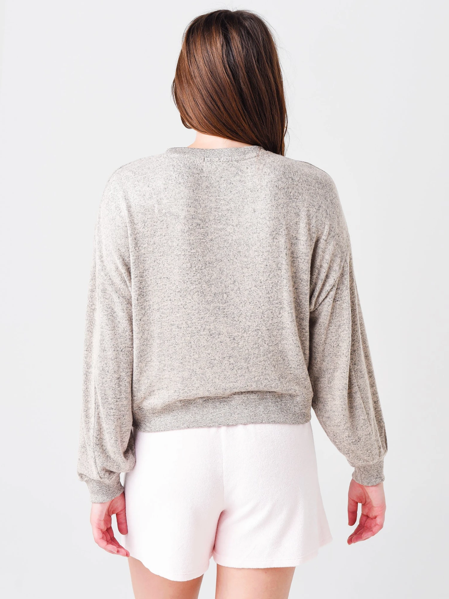 FEATURES:Pullover TopCrew NecklineRibbed Neckline, Cuffs, and HemsBrushed Sweater Knit Fabrication76% Rayon, 19% Polyester, 5% SpandexRelaxed FitModel is wearing size Small top.Model’s Measurements: Height: 5’11” | Bust: 32A | Waist: 26.5″ | Hips: 36″ | Dress Size: 2-4 (US)